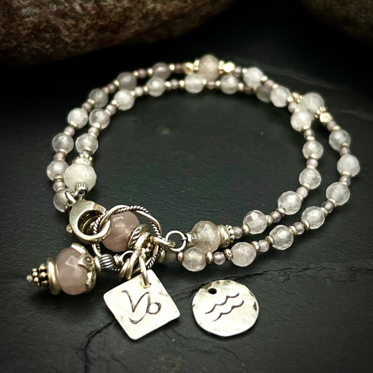 January Birthstone Wrap Bracelet with Zodiac. Charm