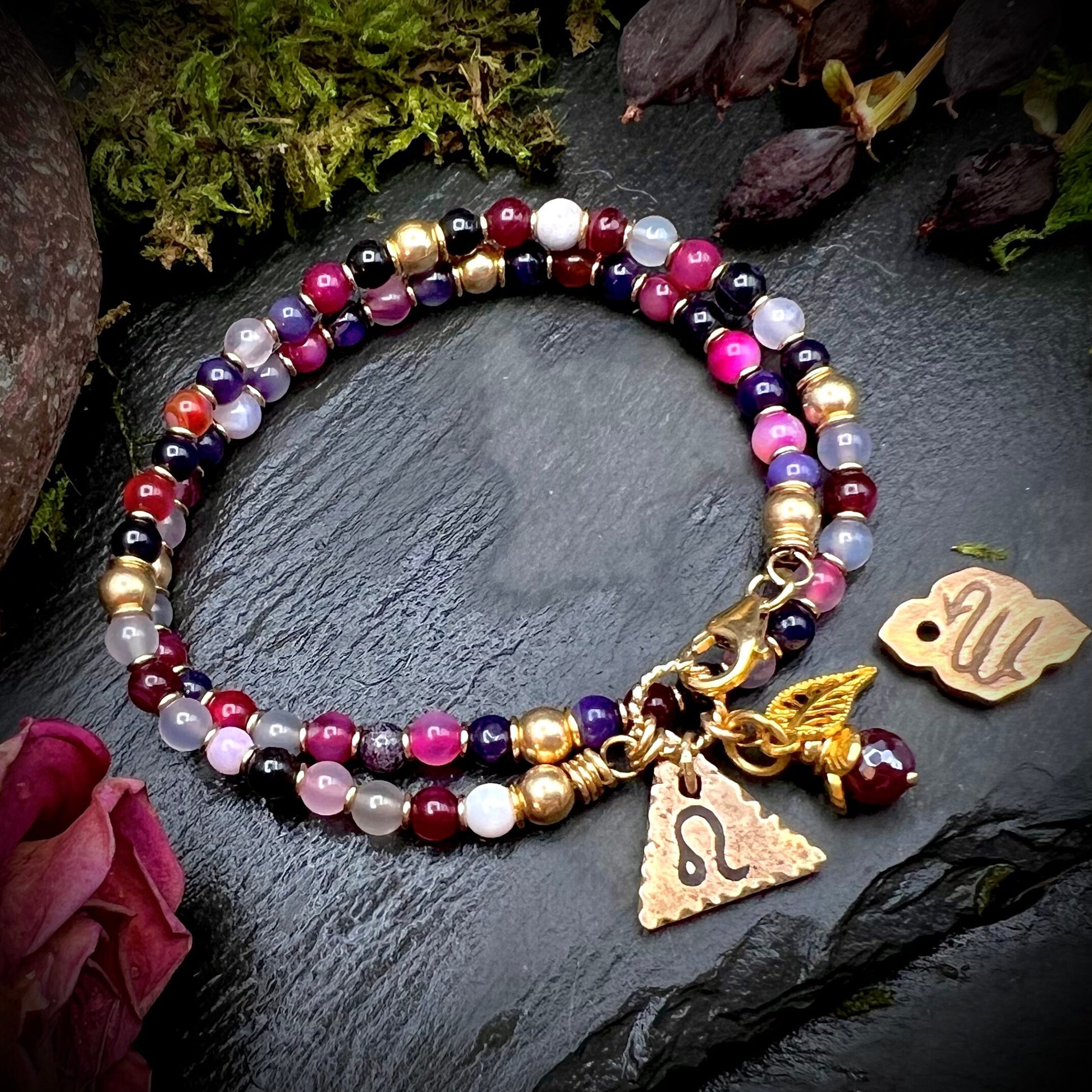 August Birthstone Wrap Bracelet with Zodiac Charm