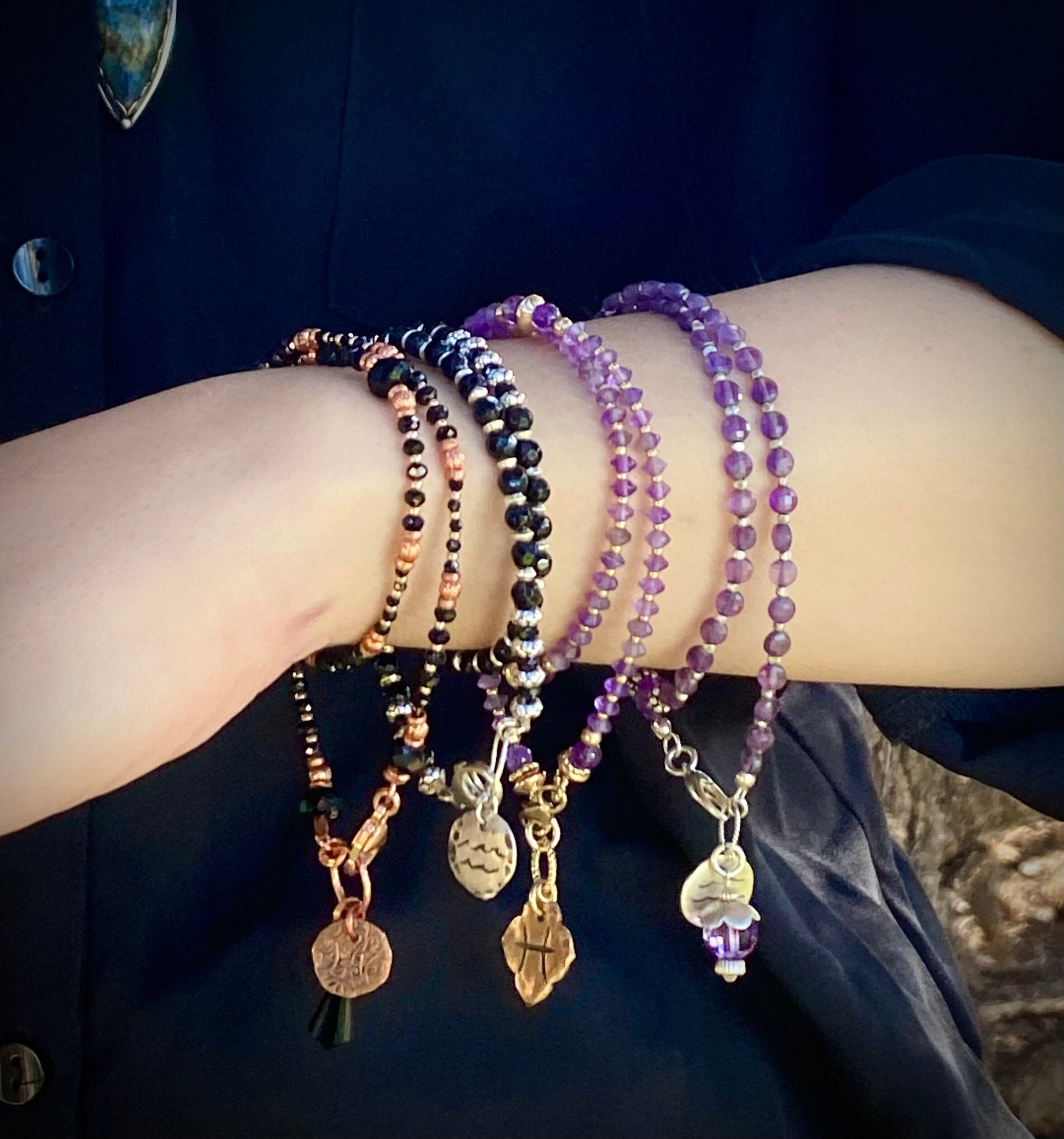 -Each bracelet is strung with precious and semi-precious gemstones representing the months of the year.