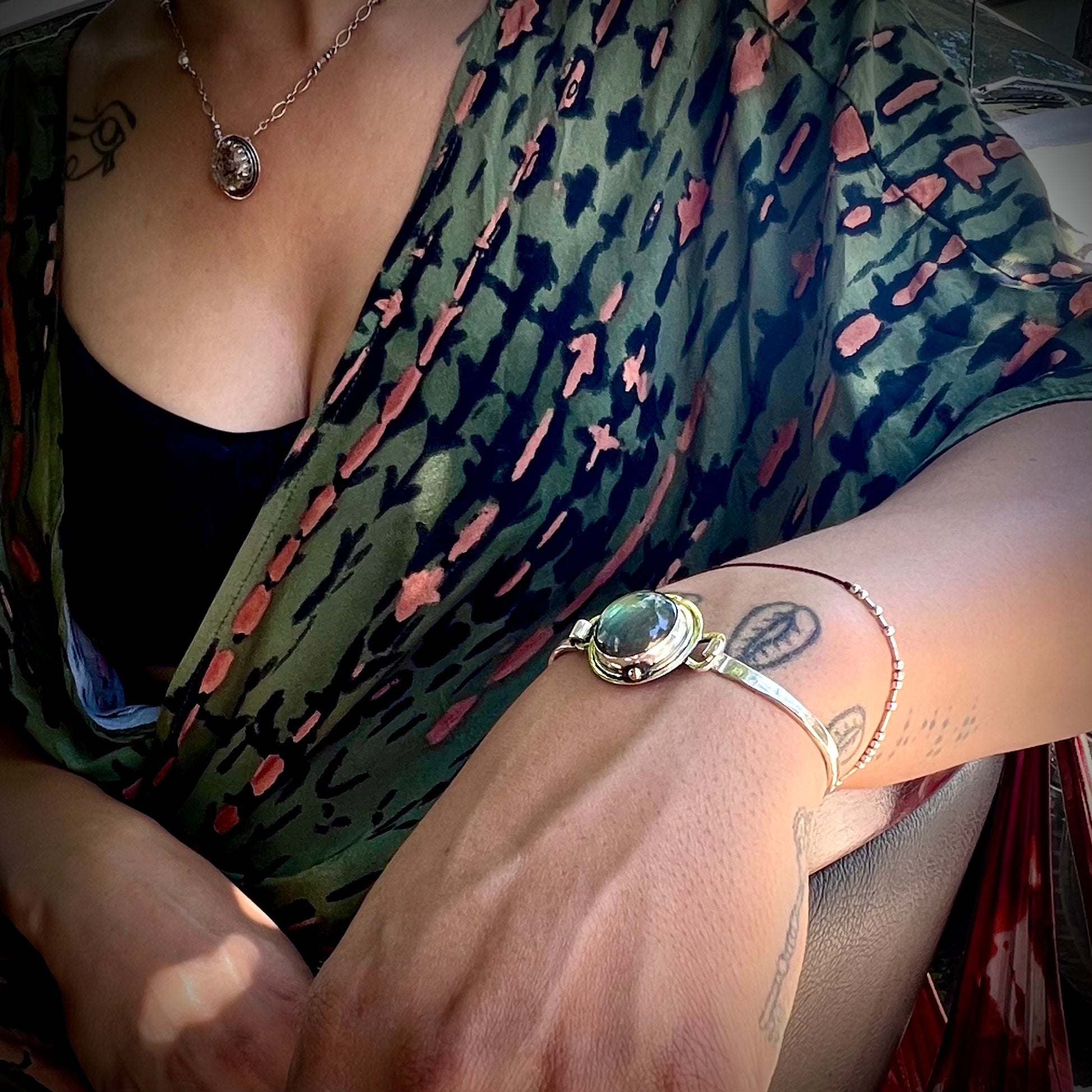 Labradorite and Silver Tension Cuff with 14kt Gold Accent