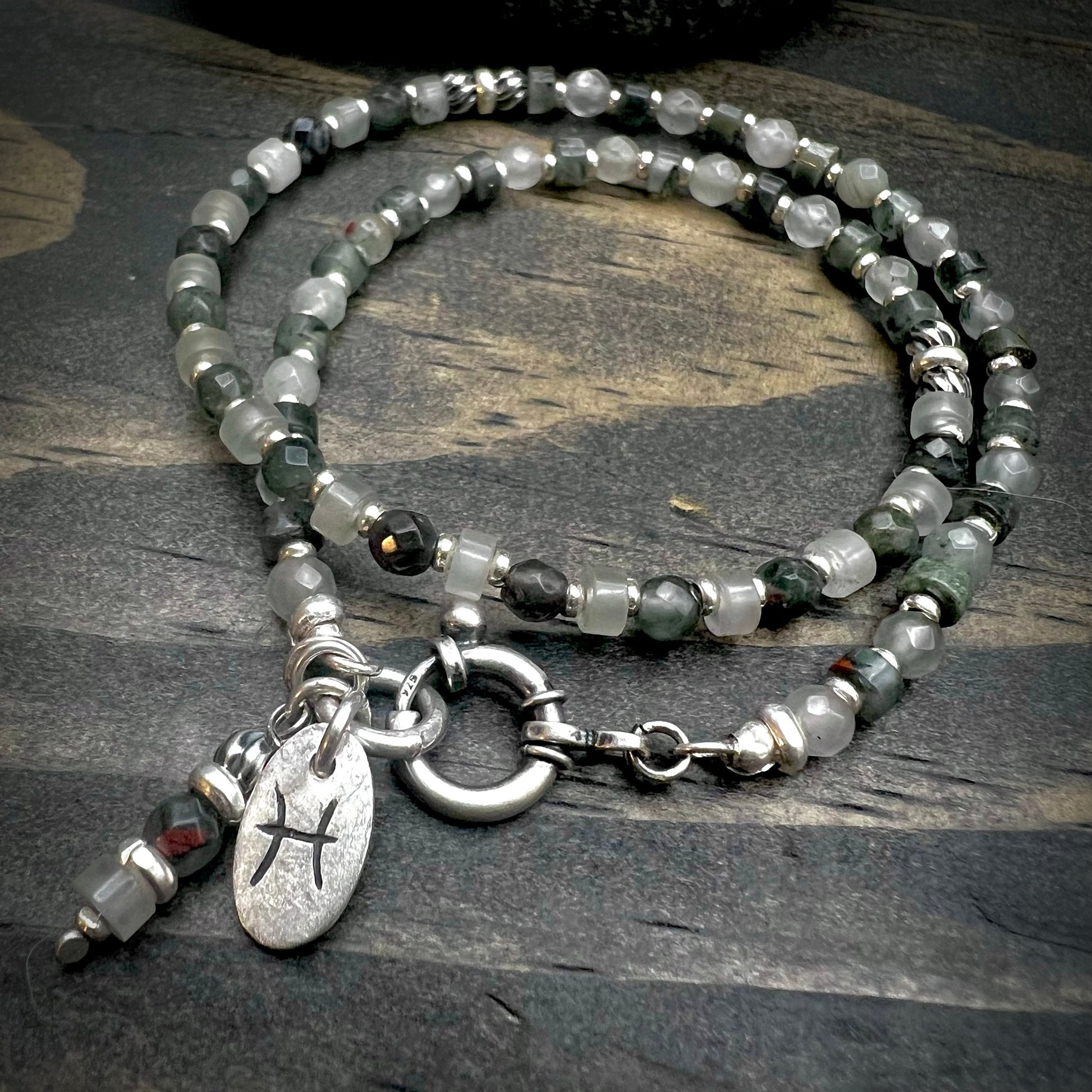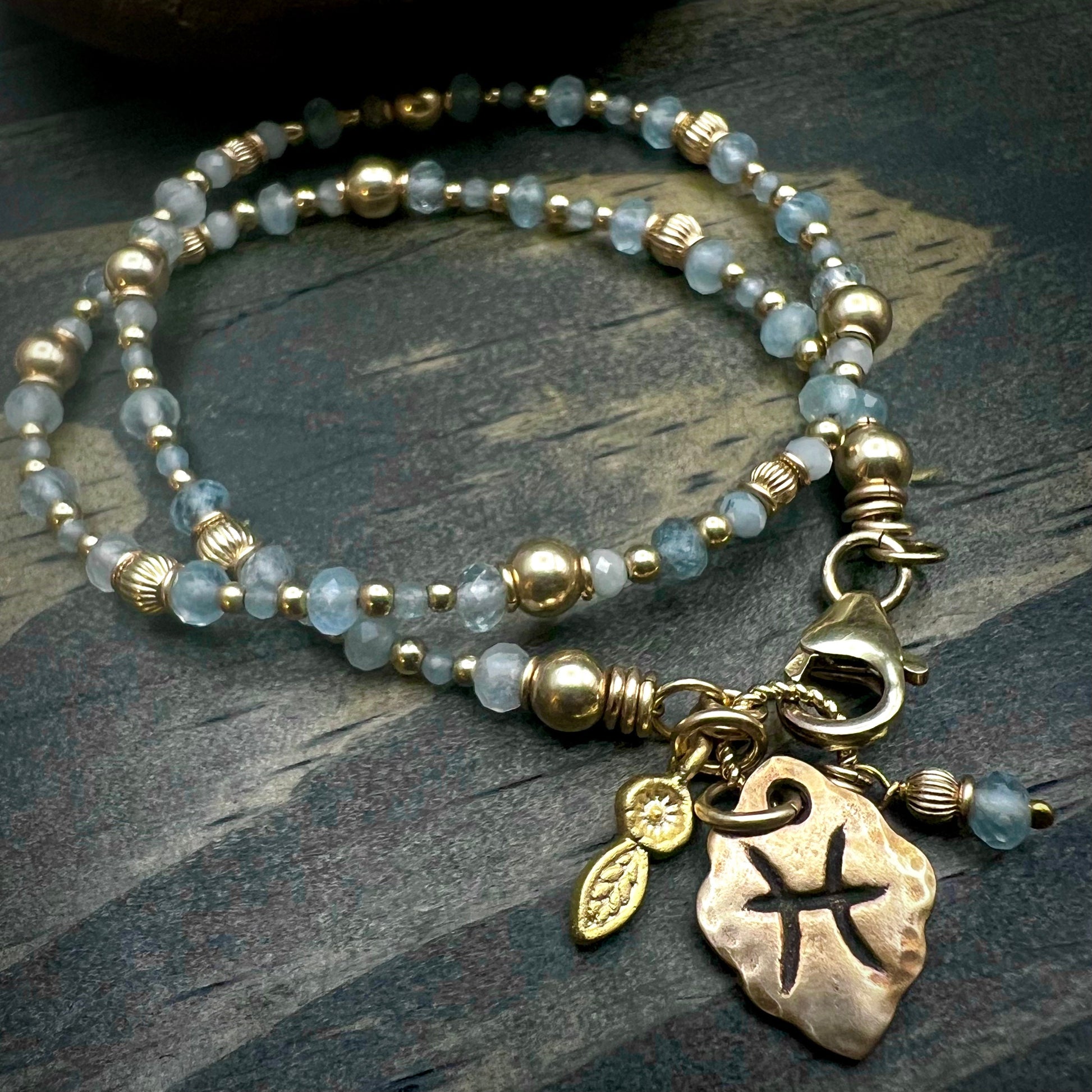 March Birthstone Wrap Bracelets with Zodiac Charm
