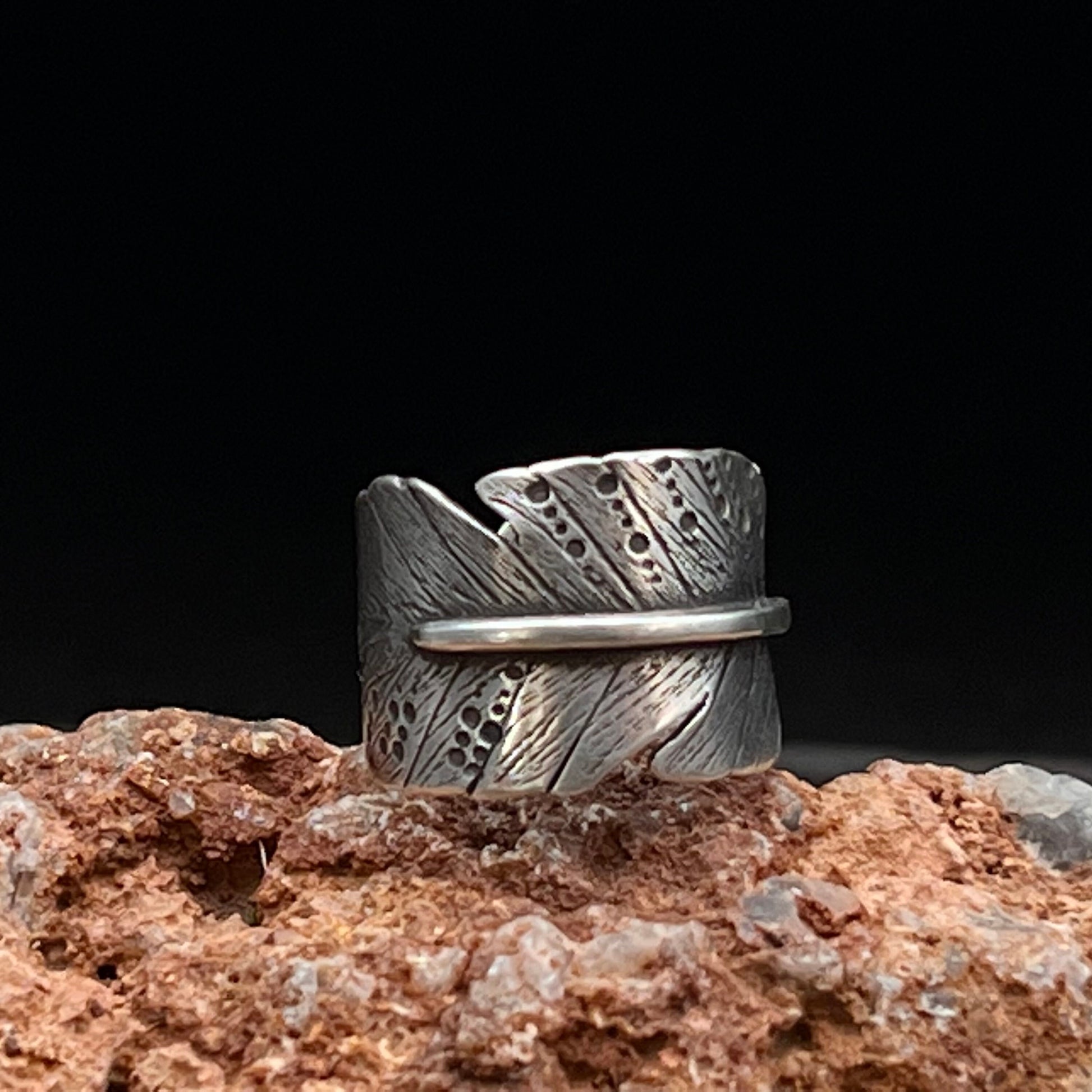 Hand forged sterling silver has been shaped into a simple and elegant feather. Each piece is custom made to order.